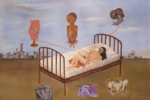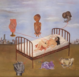 Frida விற்கு 4 முறை குழந்தைகள் வயிற்றில் இறந்தப்போனது. தன் காதல் கணவருடன் ஒரு மகனை பெற்றுக்கொள்ள வேண்டும் என்ற இலட்சியம் நிறைவேறாமலே இறந்துவிட்டார். New york நகரின் புகழ்ப்பெற்ற St Henry மருத்துவமனையில் தன் முதல் குழந்தையை தொலைத்ததை ஒரு ஓவியமாக வரைந்திருப்பார். காண்போருக்கும் வலியை தரக்கூடிய ஆனால் மிக அழகான ஓவியம்.