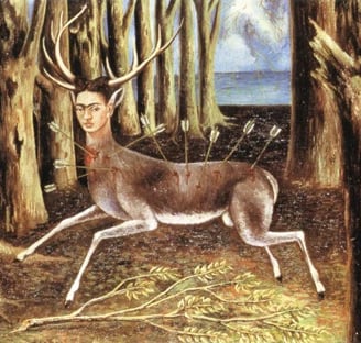 தான் மிகவும் நேசித்து கரம் பிடித்த டியாகோவிடம் மனமுறிவு ஏற்பட்டவுடன் வரைந்த 'Two Fridas' ஓவியம். அதில் Tehuana இனக்குழுவின் சம்பிரதாயத்துடன் மனக்கோலத்தில் இருக்கும் இளவயது frida தன் இதயத்தின் பிரதான நரம்பு அறுபட்டு இரத்தத்துளிகள் வெள்ளை உடையில் சொட்ட சொட்ட, அதை ஒரு கத்திரியால் பிடித்திருப்பார்.